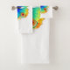 When this towel set arrived I was amazed how lovely it was. Colours so vibrant and design fabulous with hearts added. i have never seen one like this for sale in any of the shops ever!! it is really beautiful and would highly recommend this. The printing exceeded all of my expectations! Absolutely fabulous could not fault it whatsoever