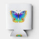 Rainbow, realistic, artistically drawn, bright colours peacock butterfly with textured detailed wings on white background. Rainbow butterfly.