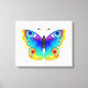 Rainbow, realistic, artistically drawn, bright colours peacock butterfly with textured detailed wings on white background. Rainbow butterfly.