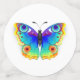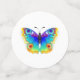 Rainbow, realistic, artistically drawn, bright colors peacock butterfly with textured detailed wings on white background. Rainbow butterfly.