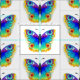Rainbow, realistic, artistically drawn, bright colors peacock butterfly with textured detailed wings on white background. Rainbow butterfly.