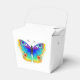 Rainbow, realistic, artistically drawn, bright colours peacock butterfly with textured detailed wings on white background. Rainbow butterfly.