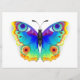 Rainbow, realistic, artistically drawn, bright colours peacock butterfly with textured detailed wings on white background. Rainbow butterfly.
