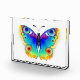 Rainbow, realistic, artistically drawn, bright colours peacock butterfly with textured detailed wings on white background. Rainbow butterfly.