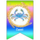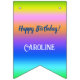 Colourful Rainbow and dark Blue Bunting Flags decorated with the sign of the Cancer Zodiac in a white and gold glitter. You only need to write the name and the birthday number once to have it ready. Add 5 difference pictures on your flags.