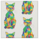 A painting of a rainbow cat. The cat has a fur pattern like a tortie, only in a lot more colours.