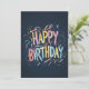 Rainbow Chalk Happy Birthday on Navy Blue Birthday Invitation