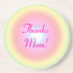 This sweet Mother's Day coaster features an abstract circular design of concentric circles ranging in pastel rainbow colours from green to yellow to light pink to a shimmering blue centre. The text reads: Thanks Mum. It can be customised to suit your needs.