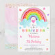 Rainbow Cloud Hearts Pink Gold Birthday Invitation