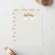A modern children's note card featuring arching pastel rainbow and cute white fluffy cloud with personalised name. The back includes a coordinating pattern backer. Click edit to customise.