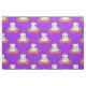 A very cute unicorn fabric pattern with several baby unicorns with wings, all sitting on rainbow-coloured clouds. In the background is a very pretty purple sky.
