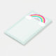 A cheerful rainbow and some happy clouds on a field of heart shaped raindrops decorate these Post It Notes which can be personalised with any name or slogan.