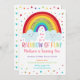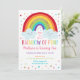 This cute birthday invitation features a colourful rainbow and clouds with rainbow confetti and faux gold glitter accents.