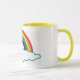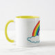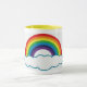 Coffee Cup With a pretty rainbow on it with yellow in the inside of the cup.