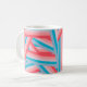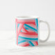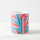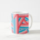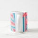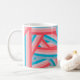 This mug has a striped design of groups of five stripes crisscrossing each other across the design blue, pink, peach, and coral. If you like the design but prefer different colours, message me.