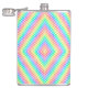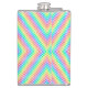 Rainbow-colored metal flask with a geometric diamond pattern made of small circles. The design is vibrant, cheerful, and visually striking.