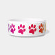 This is a heavy, durable bowl decorated with Tibbies of many colors, the perfect size for hungry/thirsty Tibs. The design is interesting and printing clear.