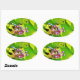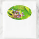 Rainbow coloured Dragonfly on a purple pink flowe Oval Sticker