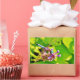 Rainbow coloured Dragonfly on a purple pink flowe Rectangular Sticker