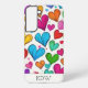 Step into a world of vibrant expression with this personalised Samsung cell phone case adorned with whimsical rainbow-coloured hearts, designed to ignite joy and add a pop of colour to your everyday life.