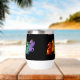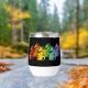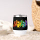 Thermal ine Tumbler with illustration of rainbow dragons in the colours of the LGBT (lesbian, gay, bisexual, and transgender people) rainbow stripes pride flag, fantasy design on black background