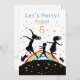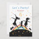 This vibrant invitation features the playful silhouette of dancing children, spreading cheer and excitement for the upcoming celebration. A whimsical rainbow graces the background and sprinkled throughout the design are tiny flowers, resembling a shower of confetti, adding an extra touch of magic to the invitation. The lively and festive atmosphere captured in this invitation sets the perfect tone for a fun-filled birthday party that will be cherished by kids and parents alike. Simply customise.