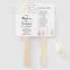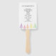 Rainbow colours colourful confetti and trees gay lesbian wedding program hand fan, featuring a colourful confetti on the front and trees in on the back in rainbow colours on white background.