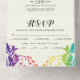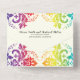 Rainbow colours colourful damask gay and lesbian all in one wedding invitation, featuring a colourful damask motif in rainbow colours on ivory background. The names are in script typography and the RSVP card can be detached.