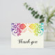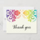 Rainbow colours colourful damask motif gay lesbian wedding Thank You flat photo note card, featuring a colourful damask motif in rainbow colours on white background and the text "Thank you". The same motif and your text are on the backside.