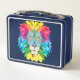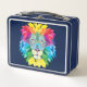 Rainbow Colours Lion Head on Blue Metal Lunch Box