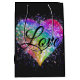Rainbow colours sparking glitter heart love medium gift bag