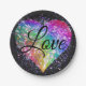Rainbow colours sparking glitter heart love pa paper plate