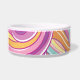 I love this bowl. It's nice and heavy and feels well made. I think Zazzle could make it even better however. This large bowl is actually on the small side for a large dog. I'd love to see one size larger. Also, if you want a colored background, there will be a rather thick strip of white on the top and the bottom. I wish I could have the entire face of the bowl printed in a color. The printing is crisp and clear and does a good job of showing off my Create With Photos running Portuguese Water Dog design.