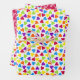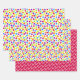 These wrapping paper sheet features multicolored hearts in a confetti pattern, with two sheets having different size hearts and the third in pink with white text / name, which can be personalised.