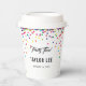 Rainbow birthday party paper cups! Featuring fun rainbow coloured confetti circles sprinkles all around with your birthday boy or girl's info in the centre. "Party Time" in fun script font with your child's information below.