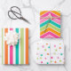 Rainbow confetti stripes colourful retro wrapping paper sheet