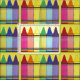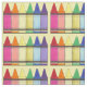 Fabric features rows of rainbow crayons, printed on a pale yellow background. Created from an original marker illustration.