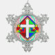 Rainbow Cross Snowflake Pewter Christmas Ornament