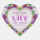 Announce your upcoming special event! Customisable Glossy finish heart shape Stickers | Gorgeous pattern made in shades of pretty pink, purple, fuchsia, fresh bright green luminous heart. Save the Date but easily customised to suit bridal shower, wedding, engagement announcement heart shape stickers. . All the text here are changeable (customisable) ~ suitable for announcing any event. Sheet of 20 stickers.