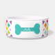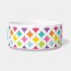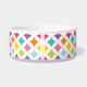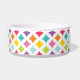 Brightly coloured Rainbow Diamond Print dog bowl with blue bone frame for personalising with your pet's name.