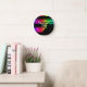 This clock features a rainbow-colored image of people silhouetted against a sunset as they walk along a dock. The original photograph was taken along the shores of Lake Washington near Seattle, Washington, and it has rainbow effects applied to it. It tries to capture that moment when time seems suspended as the last rays illuminate the lake and people enjoy their last few moments outdoors. This clock is available in a selection of sizes and a square or circle shape.