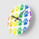 Rainbow Dog Pawprint Round Clock