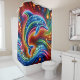 Dive into the vibrant world of “Rainbow Dolphin: Ocean Glow,” a captivating addition to the Sea Mammal Majesty collection by H2OArt by AlexSandra. This shower curtain features a vibrantly coloured dolphin with rainbow hues, swimming through stylised waves and bubbles. The background includes glowing light orbs, adding a fantastical element to the scene. The dynamic composition and vivid colours create an energetic and whimsical effect, transforming your bathroom into a lively aquatic sanctuary.