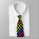 This colourful tie has diagonal rows of polka dots in rainbow colours on a black background on both sides. Black background colour may be changed to the colour of your choice by clicking "customise" and editing the background colour.
