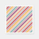 Cheerful rainbow colours in the form of dots and stripes bring a happy vibe to any party. This girl-themed birthday party napkin features multiple coloured stripes and dots that alternate between burnt orange, golden yellow, seafoam blue, purple, and peach. The stripes and dots are placed diagonally across the napkin.