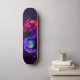 a decorative dragon design featuring all the colours of the rainbow on a dark purple coloured skateboard.