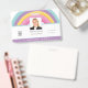 A company photo ID badge with the colours of the rainbow running along the top edge and your company name along the bottom. Swap in your photo (of square orientation), and company logo, and easily personalise the text to your own details. You can also add your return address on the back in case your card gets lost or delete this text if you so wish. The font styles and colour can also be changed via the Customise Further option.