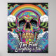 All rights reserved © Angelandspot a graffiti style AI generated work of art with a multicolor skull crying and a quote I'm Fine Everything is Fine in a rainbow and clouds