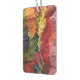 This air freshener features an image of a contemporary abstract fabric pattern in wavy psychedelic rainbow colours of pink, red, yellow, orange, green, blue, brown, mauve, purple and turquoise which resembles a painter's palette.
