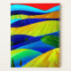 An abstract landscape of rolling hills in bright vibrant colours with angular lines.